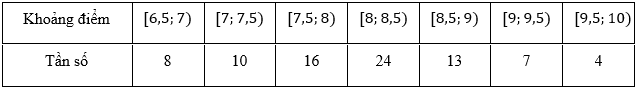 Thống kê điểm trung bình môn Toán của một số hoc sinh lớp 11 được cho ở bảng sau:Hãy ước
