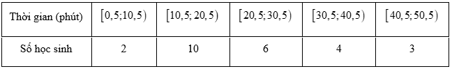 Thời gian (phút) để học sinh hoàn thành một câu hỏi thi được cho như sau: