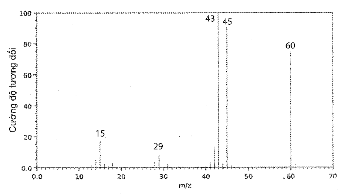 Phân tử acetic acid có phổ khối lượng (MS) như hình vẽ dưới đây: