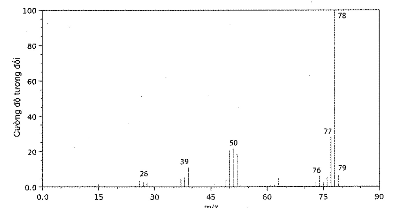 Hình ảnh dưới đây là phổ khối lượng của phân tử benzene.Phân tử khối của benzene