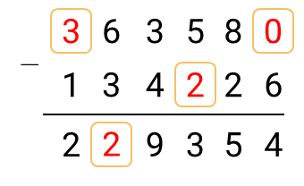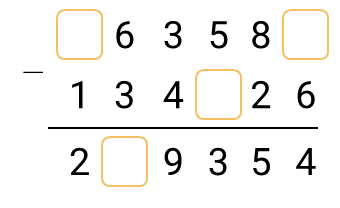 Lần lượt thực hiện phép trừ theo thứ tự từ phải sang trái, từ đó lựa chọn các chữ số thích hợp để điền vào ô trống.