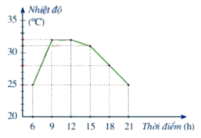 Cho biểu đồ đoạn thẳng biểu diễn nhiệt độ tại một số thời điểm trong ngày 23/4/2022 ở