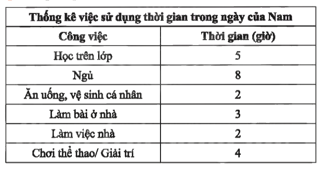 Bảng thống kê sau đây cho biết thười gian của bạn An trong một ngày. Hãy biểu diễn dự