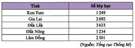 So sánh về số lớp học cấp trung học cơ sở của 5 tỉnh Tây Nguyên tính đến ngày 30/09/2021 được cho trong bảng thống kê sau: