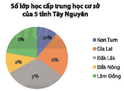 b) Biểu đồ cột ở phần a) được chuyển sang biểu đồ hình quạt tròn như dưới đây. Hãy tìm các giá trị của x, y, z, t, ,m trong biểu đồ.