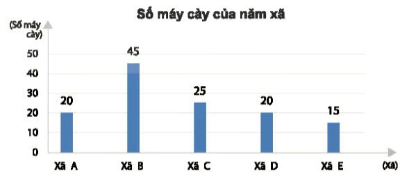 Đọc biểu đồ biểu diễn số máy có trong năm xã sau đây và trả lời các câu hỏi bên dưới.