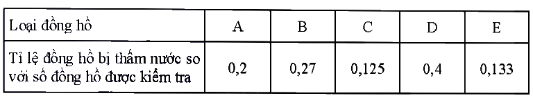 Một số công ty sản xuất đồng hồ đeo tay quảng cáo rằng đồng hồ của họ chống thấm nước. Sau khi cơ quan kiểm định chất lượng kiểm tra, kết quả được công bố như biểu đồ sau: