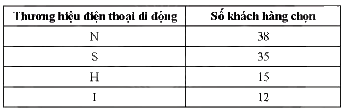 Bảng thống kê sau đây cho biết sự lựa chọn của 100 khách hàng mua điện thoại di động.