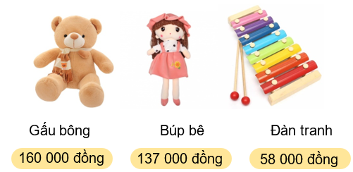 Hình dưới đây cho biết giá tiền của một số món đồ chơi: