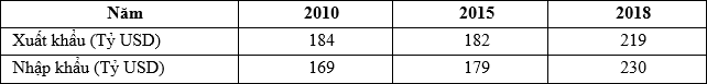 Cho bảng số liệu: GIÁ TRỊ XUẤT KHẨU, NHẬP KHẨU HÀNG HÓA VÀ DỊCH VỤ CỦA IN-ĐÔ- NÊ-XI-A QUA