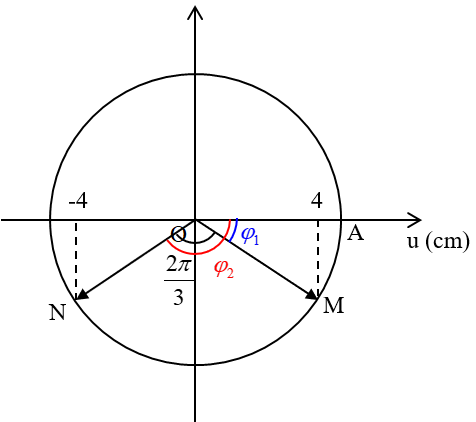 Một sóng cơ lan truyền qua điểm M rồi đến điểm N cùng nằm trên một phương truyền sóng cách nhau một phần ba bước sóng. Tại thời điểm t = 0 thì li độ tại M là +4 cm và tại N là -4 cm. Xác định thời điểm \({t_1}\) và \({t_2}\) gần nhất để M và N lên đến vị trí cao nhất. Biết chu kì sóng là 1 s.
