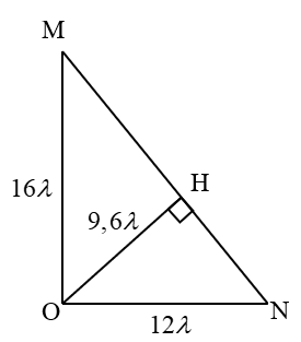 Trên mặt thoáng của một chất lỏng, một mũi nhọn O chạm vào mặt thoáng dao động điều hòa với tần số f, tạo thành sóng trên mặt thoáng với bước sóng \(\lambda \). Xét hai phương truyền sóng Ox và Oy vuông góc với nhau. Gọi M là một điểm thuộc Ox cách O một đoạn \(16\lambda \) và N thuộc Oy cách O một đoạn \(12\lambda \). Tính số điểm dao động đồng pha với nguồn O trên đoạn MN (không kể M, N).