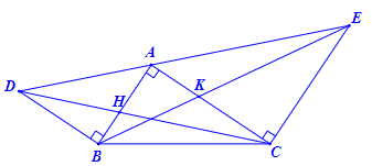 Cho tam giác ABC vuông tại A. Vẽ về phía ngoài hai tam giác ABD và ACE vuông cân tại B và E. Gọi H là giao điểm của AB và CD ; K là giao điểm của AC và BE. Chứng minh rằng: