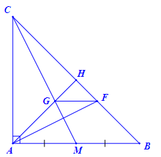 Nhận thấy từ \(FB = 2.FC\) suy ra: \(\dfrac{{BF}}{{CF}} = 2\) mang tính chất trọng tâm tam giác. Do vậy nếu gọi \(G\) là trọng tâm tam giác, AH là đường trung tuyến thì dễ dàng nhận được \(GF\parallel AC\) và \(AH \bot BC\) nên G là trực tâm tam giác ABF.
