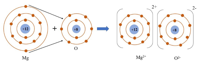 Trong phân tử MgO, nguyên tử Mg (magnesium) và nguyên tử O (oxygen) liên kết với nhau bằng liên kết