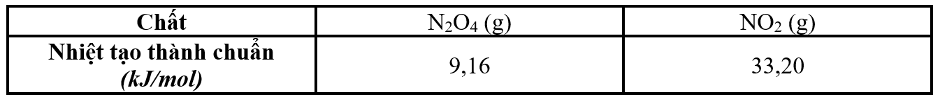 Biến thiên enthalpy chuẩn của phản ứng sau: 2NO2(g) ⟶ N2O4(g) là