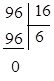 Thực hiện phép chia \(96:16\) ta được thương là: