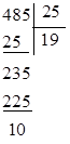 Thực hiện phép tính \(485:25\) được kết quả là: