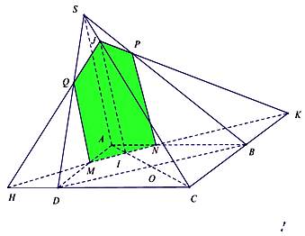Cho hình chóp \(S \cdot ABCD\) có đáy là hình bình hành tâm \(O\). Trên \(AO\) lấy điểm \(I\) bất kì ( \(I\) khác \(A\) và \(O)\). Thiết diện của hình chóp cắt bởi \(\left( P \right)\) qua \(I\) song song với \(SA\) và \(BD\) là