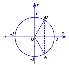 Một phương trình có tập nghiệm được biểu diễn trên đường tròn lượng giác là hai điểm \(M\) và \(N\) trong hình dưới.