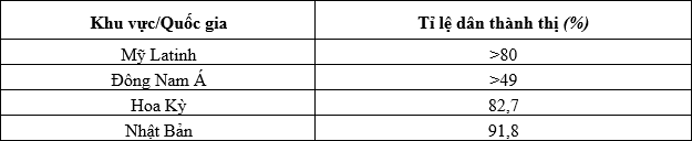 Tỉ lệ dân thành thị một số khu vực và quốc gia trên thế giới năm 2020