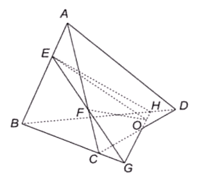 Cho tứ diện \(ABCD\). Gọi \(E,F\) là các điểm lần lượt thuộc các cạnh \(AB,AC\) sao cho \(AE = \dfrac{1}{2}BE\) và \(AF = 2CF\). Gọi \(O\) là một điểm nằm trong tam giác \(BCD\).