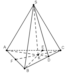 Cho tứ diện \(S.ABC\) có \(E,\,\,F\) lần lượt thuộc đoạn \(AC,\,\,AB\). Gọi \(K\) là giao điểm