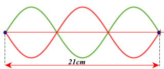 Khi khảo sát sóng dừng của một sóng âm có tần số 2500 Hz thì thấy giữa hai nút sóng cách nhau 21 cm thì có ba vị trí bụng sóng. Xác định bước sóng của sóng âm này.