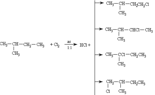 Cho isopentane tác dụng với chlorine trong điều kiện có ánh sáng thu được số đồng phân cấu