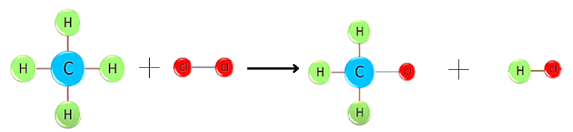 CH4(g) + Cl2(g) \(\xrightarrow{{a/s}}\) CH3Cl(g) + HCl(g)