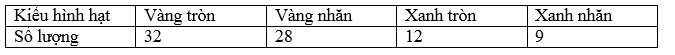 Ở cây đậu, alen qui định hạt màu vàng (Y) là trội so với alen qui định quả xanh (y). Alen qui định hạt tròn (R) là trội so với alen qui định hạt nhăn (r). Kết quả của các phép lai được trình bày trong bảng dưới đây