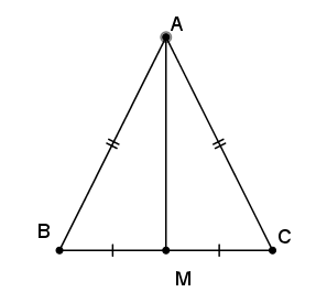 Cho tam giác \({\rm{ABC}}\) có \({\rm{AB}} = {\rm{AC}}\) và \({\rm{M}} \in {\rm{BC}};{\rm{MB}} = {\rm{MC}}\). Chọn