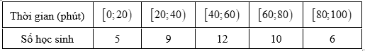 Khảo sát thời gian chạy bộ trong một ngày của một số học sinh khối 11 thu được mẫu số