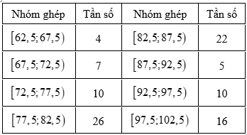 Dưới đây là một mẫu số liệu cho ở dạng bảng tần số ghép nhóm. Nhóm chứa trung vị