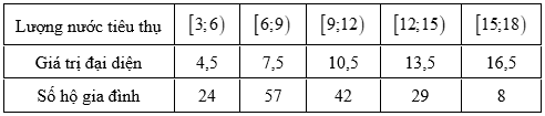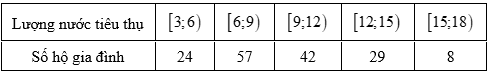 Một công ty cung cấp nước sạch thống kê lượng nước các hộ gia đình trong một khu vực tiêu thụ trong một tháng ở bảng sau:
