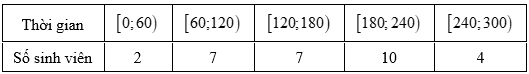 Thời gian sử dụng điện thoại trong một ngày của 30 sinh viên được ghi lại ở bảng sau (đơn
