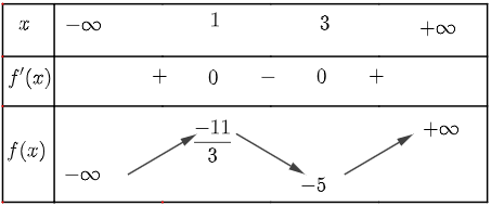 Tiếp tuyến tại điểm cực tiểu của đồ thị hàm số \(y = \dfrac{1}{3}{x^3} - 2{x^2} + 3x - 5\)