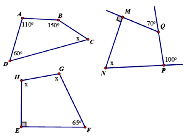 Tìm giá trị của x trong từng hình vẽ dưới đây