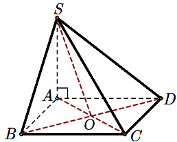 Cho hình chóp tứ giác S.ABCD có đáy là hình vuông cạnh 2a, cạnh bên \(SA = a\sqrt 2 \) và vuông góc