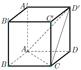 Cho hình hộp chữ nhật \(ABCD \cdot {A^\prime }{B^\prime }{C^\prime }{D^\prime }\) có \(AB = a,BC = 2a\) và \(A{A^\prime } = 3a\). Gọi \(\alpha \) là góc giữa hai mặt phẳng \(\left( {AC{D^\prime }} \right)\) và \((ABCD)\). Giá trị của \(\tan \alpha \) bằng