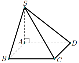Cho hình chóp S.ABCD có đáy ABCD là hình vuông cạnh a. Biết SA vuông góc với đáy và \(SA = a\) (tham