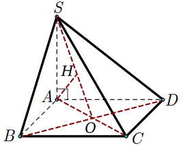 Kẻ \(AH \bot SO\) với O là tâm đáy. Chứng minh \(d\left( {A,\left( {SBD} \right)} \right) = AH\)