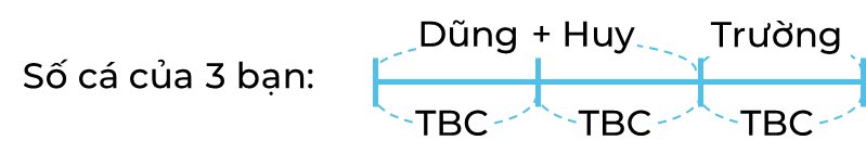 Vẽ sơ đồ, từ đó suy ra số cá Trường câu được bằng trung bình cộng số cá của Dũng và Huy.