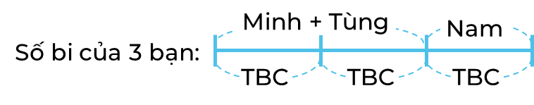 Vẽ sơ đồ, từ đó suy ra số bi của Nam bằng trung bình cộng số bi của Minh và Tùng.