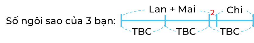 Vẽ sơ đồ của bài toán, tính trung bình cộng số ngôi sao 3 bạn gấp được, từ đó tính số ngôi sao Chi gấp được.