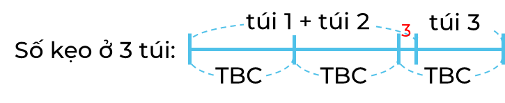 - Sau đó tính trung bình cộng và số kẹo ở túi thứ ba.