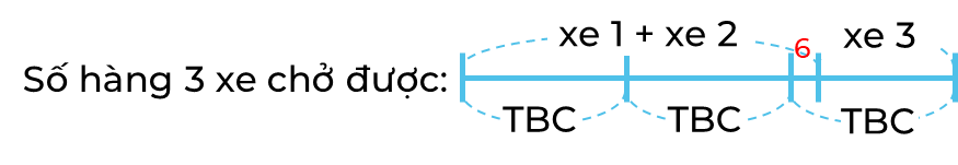 - Vẽ sơ đồ của bài toán, từ đó tính trung bình số hàng cả ba xe chở được, rồi tính số tạ hàng cả ba xe chở được.