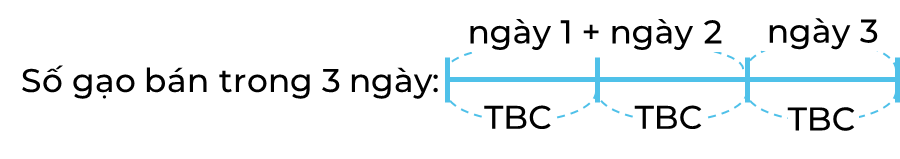 - Vẽ sơ đồ của bài toán, từ đó tính trung bình số gạo bán được trong 3 ngày. Sau đó tính tổng số gạo cửa hàng đã bán được.