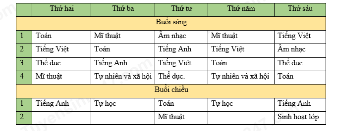 Giả sử em được sắp xếp thời khóa biểu cho lớp mình, em hãy thiết kế thời khóa biểu với các môn học cho sẵn sau: