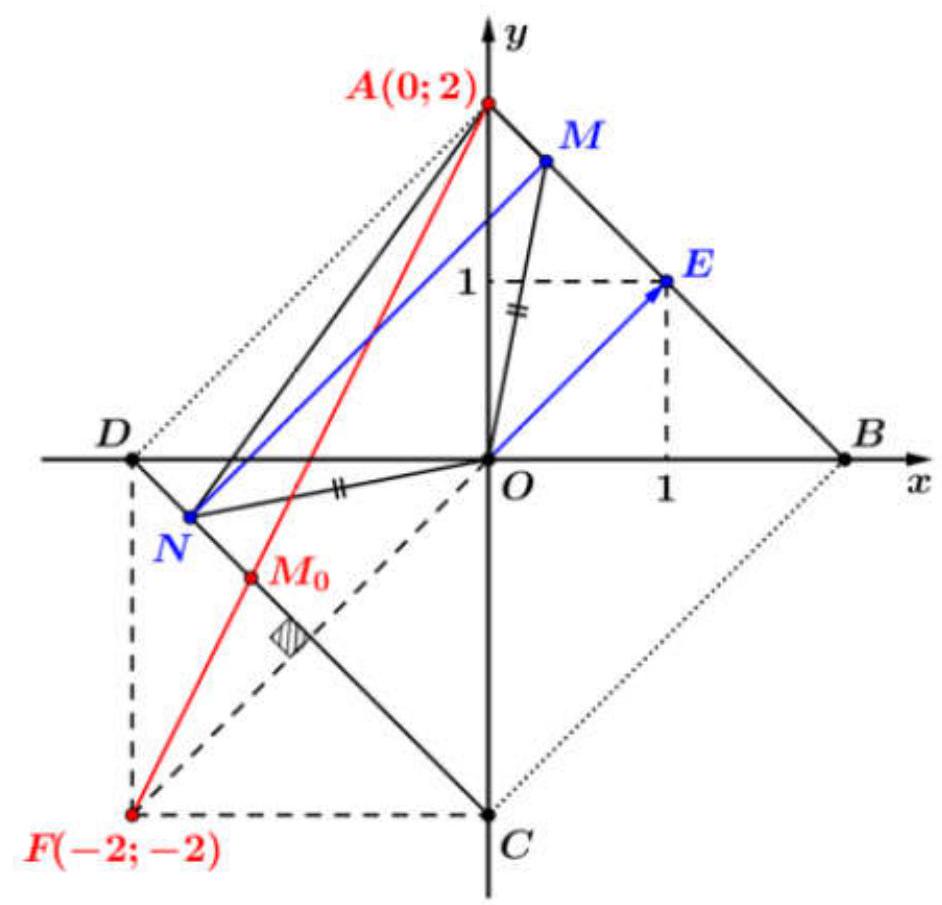 Gọi \(S\) là tập hợp các số phức \(z = a + bi\left( {a,b \in \mathbb{R}} \right)\) thỏa mãn \(\left| {z + \overline z \left| + \right|z - \overline z } \right| = 4\) và \(ab > 0\). Xét \({z_1}\) và \({z_2}\) thuộc \(S\) sao cho \(\dfrac{{{z_1} - {z_2}}}{{1 + i}}\) là số thực dương. Giá trị nhỏ nhất của biểu thức \(\left| {{z_1}} \right| + \left| {{z_2} - 2i} \right|\) bằng